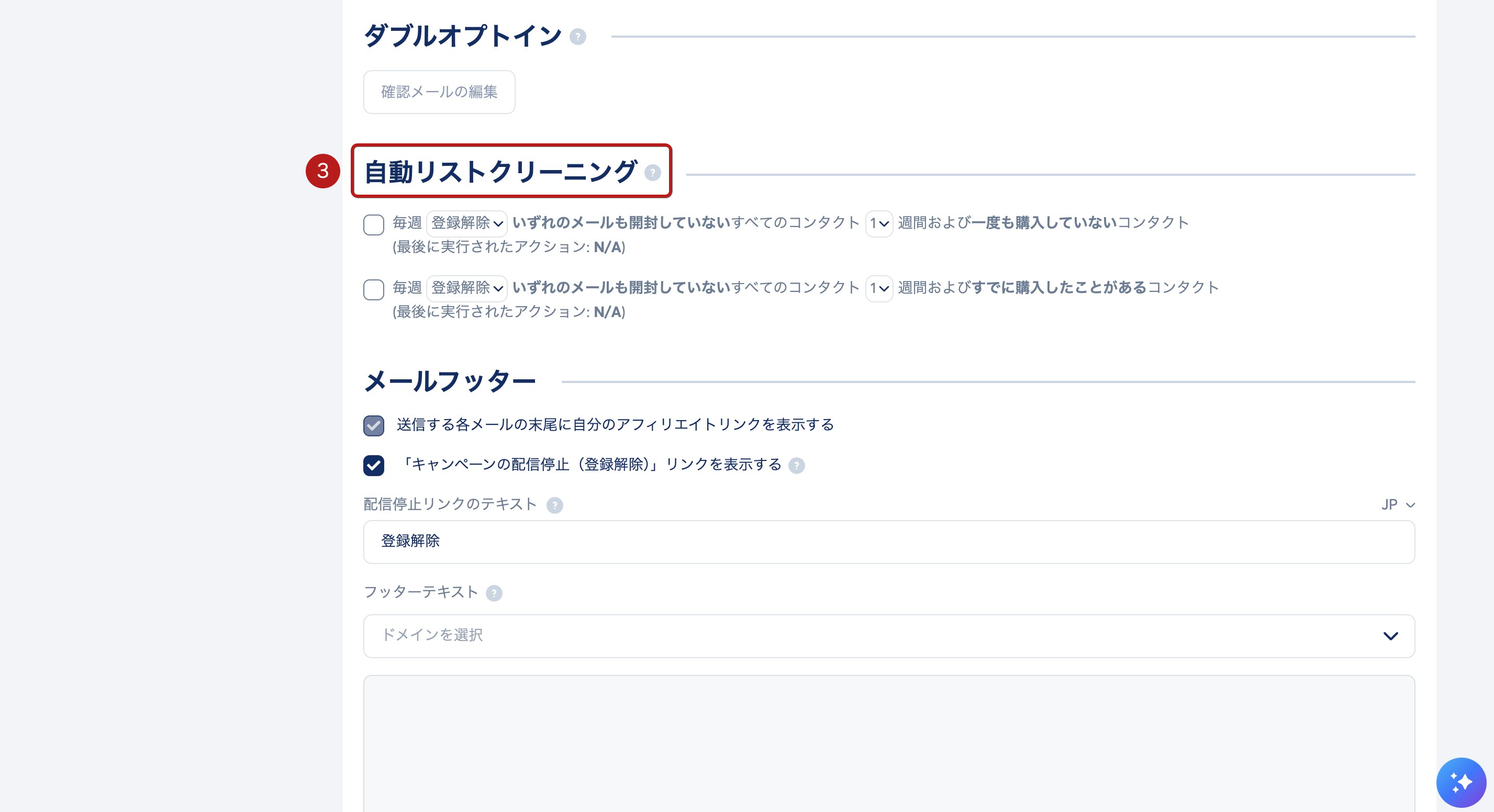 自動リストクリーニングセクション(3)まで下にスクロールします。以下の2つのオプションが表示されます: