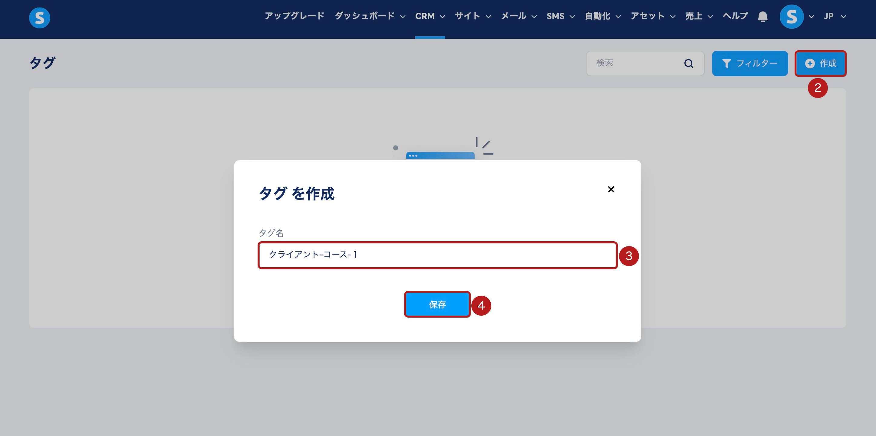 例えば、 オンラインコース1を購入した顧客に対して、「クライアント-コース-1」というタグを割り当てることができます。