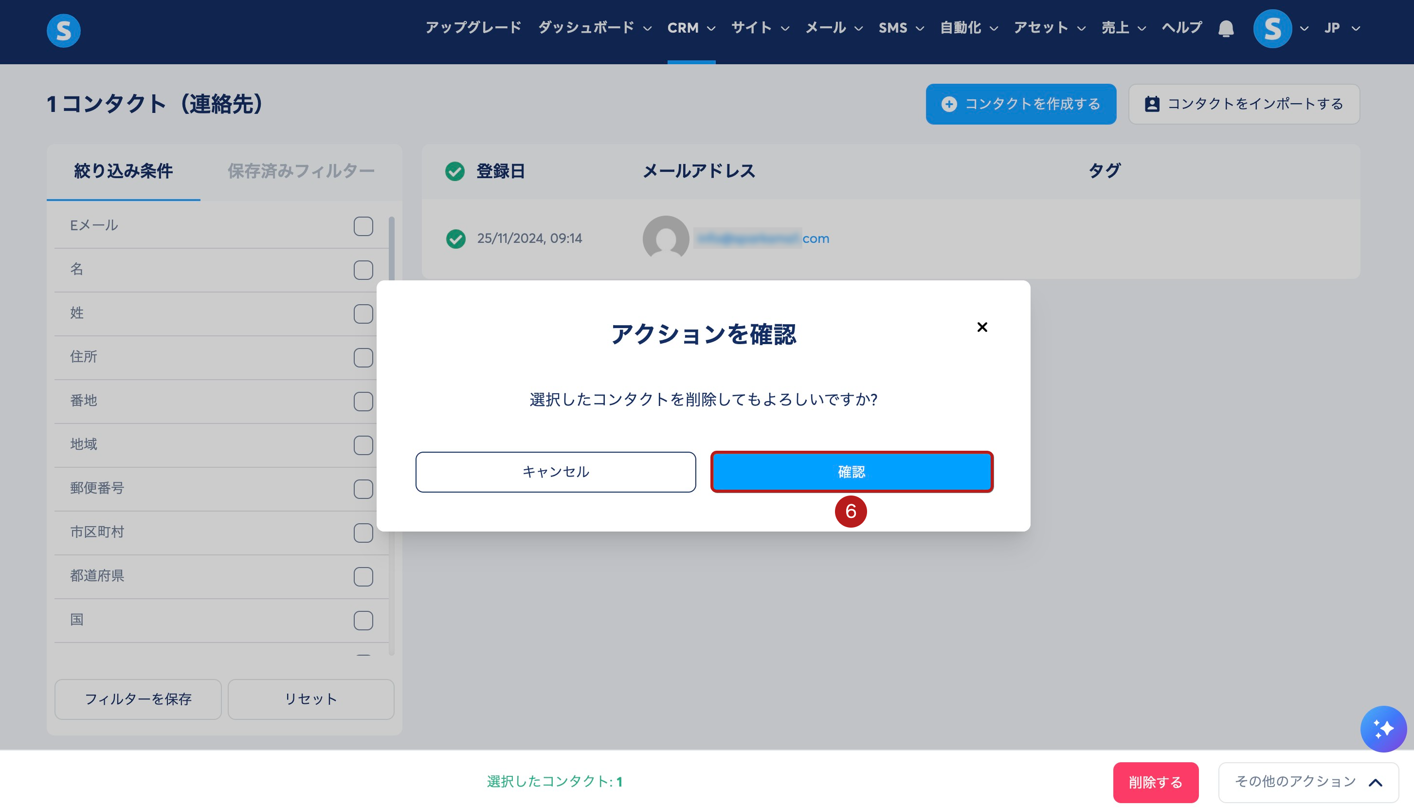 最後に、確認 (6) をクリックして、リストから該当のコンタクトを削除します。