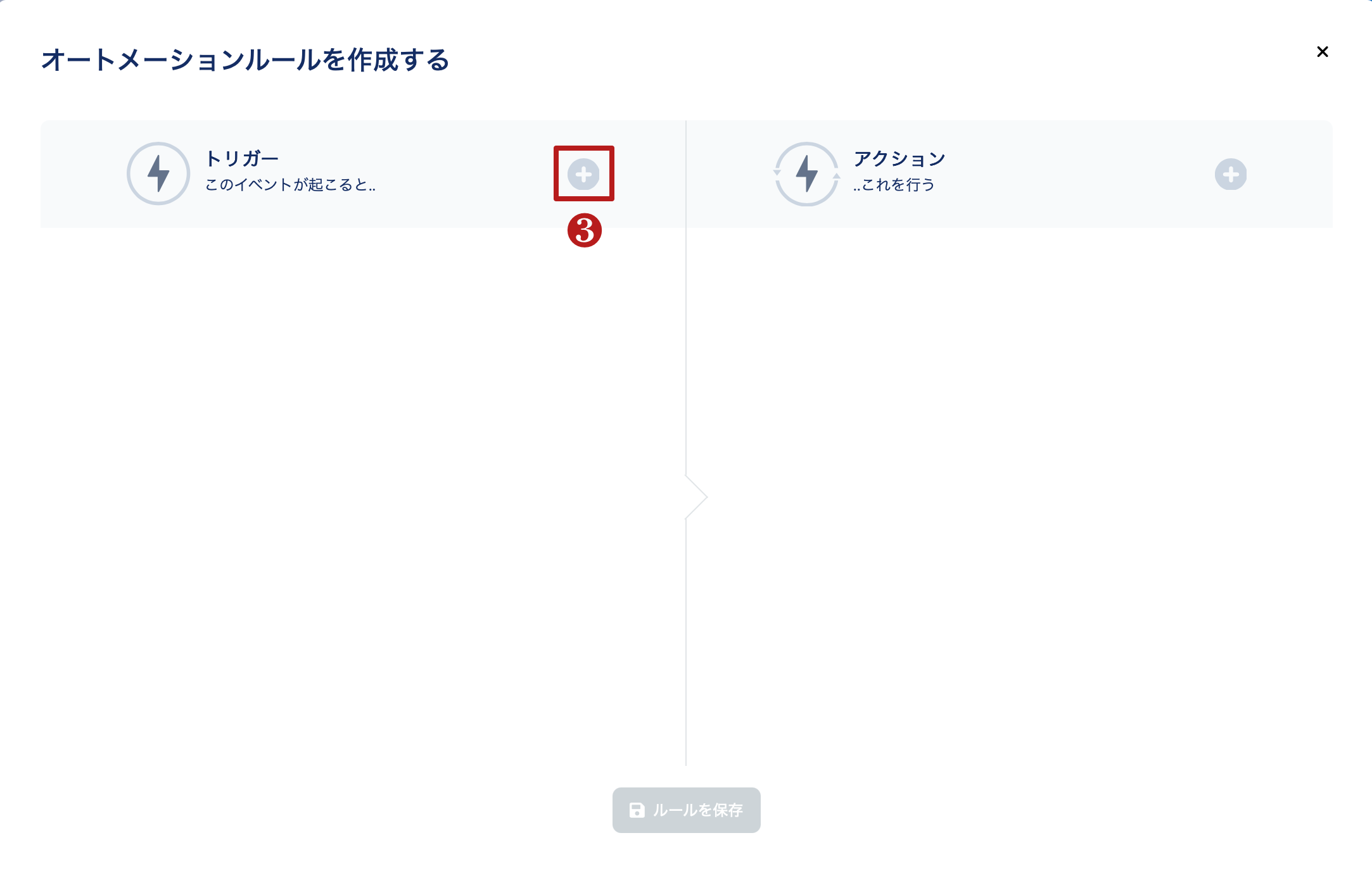自動化ルールを作成するためのポップアップが表示されます。トリガーを追加するには「+」アイコンをクリックする必要があります(3)。