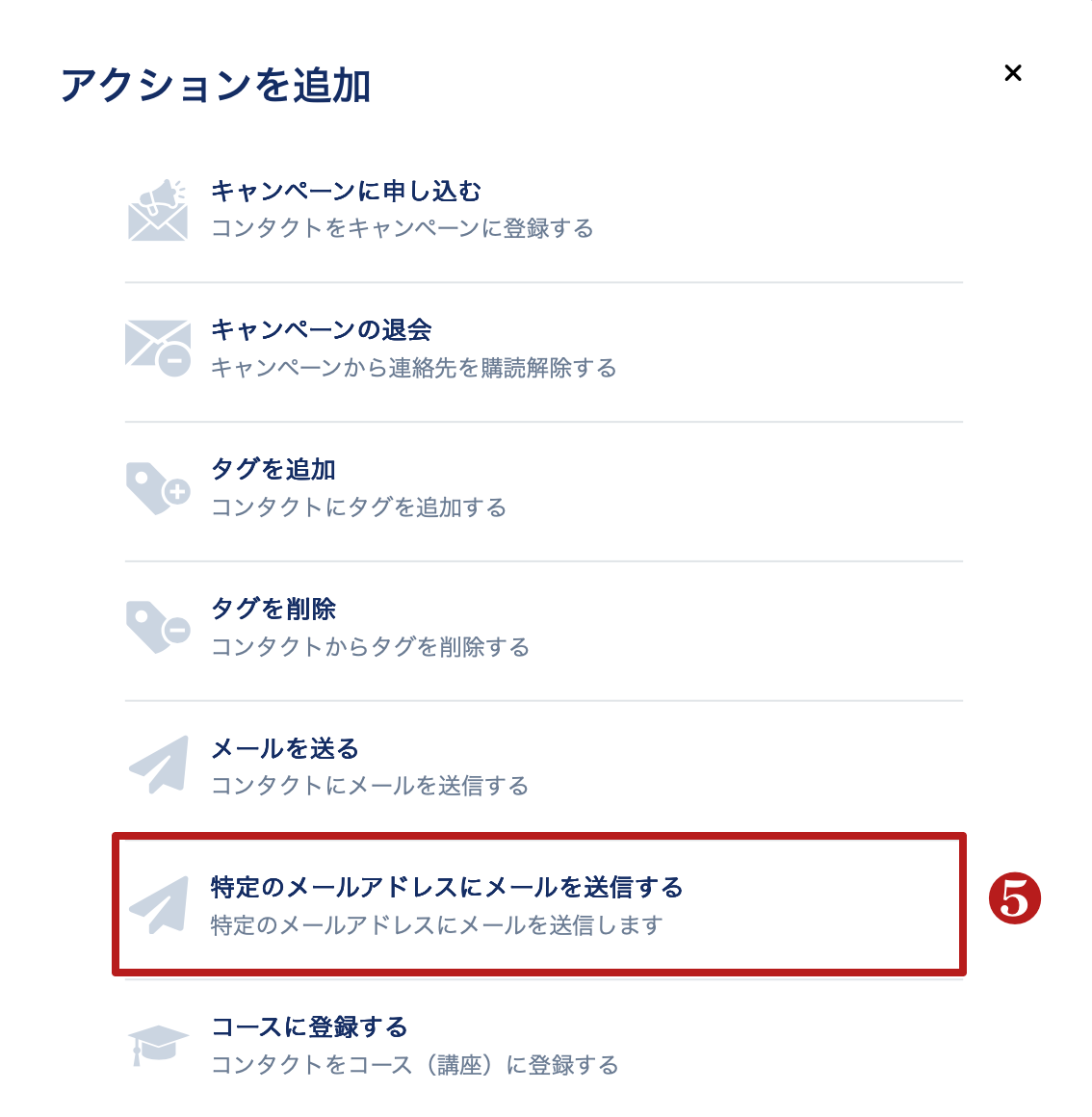 メールアクションを追加するには、「+」ボタンをクリックします。(4)