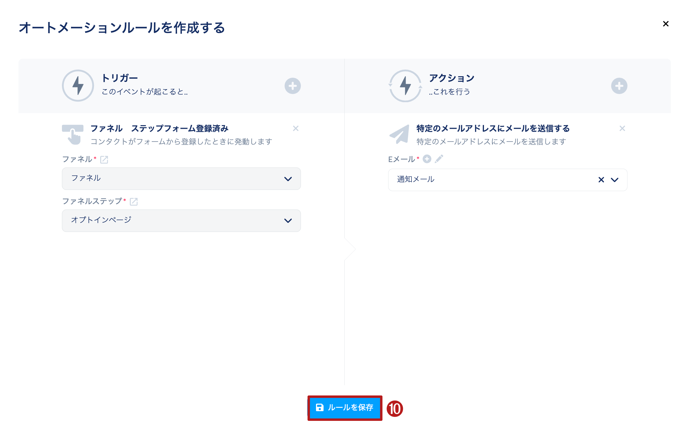 最後に、「ルールを保存」をクリックして自動化ルールを保存します。(10)