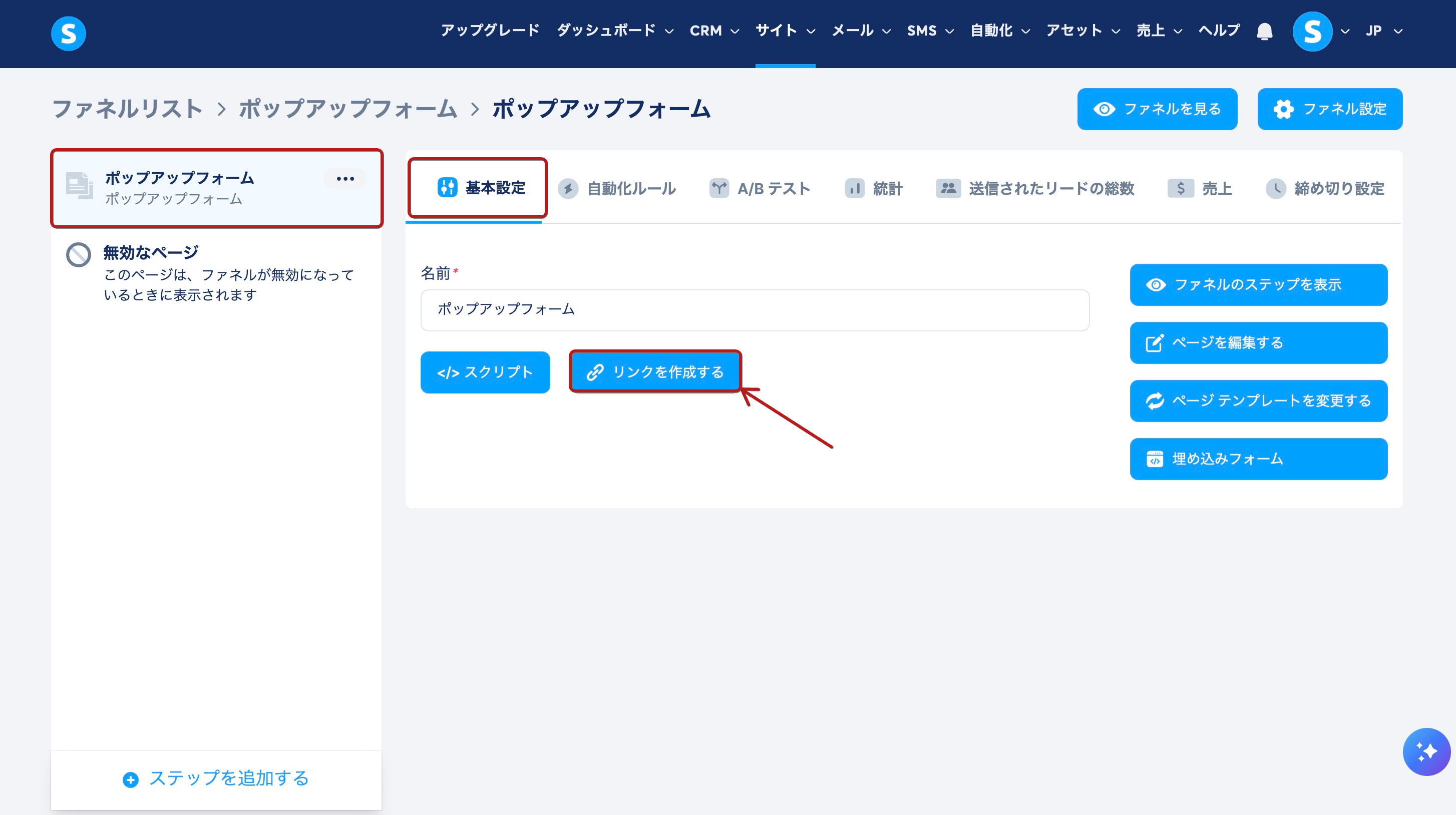 まず、セールスファネルからコンタクトフォームを作成する必要があります。