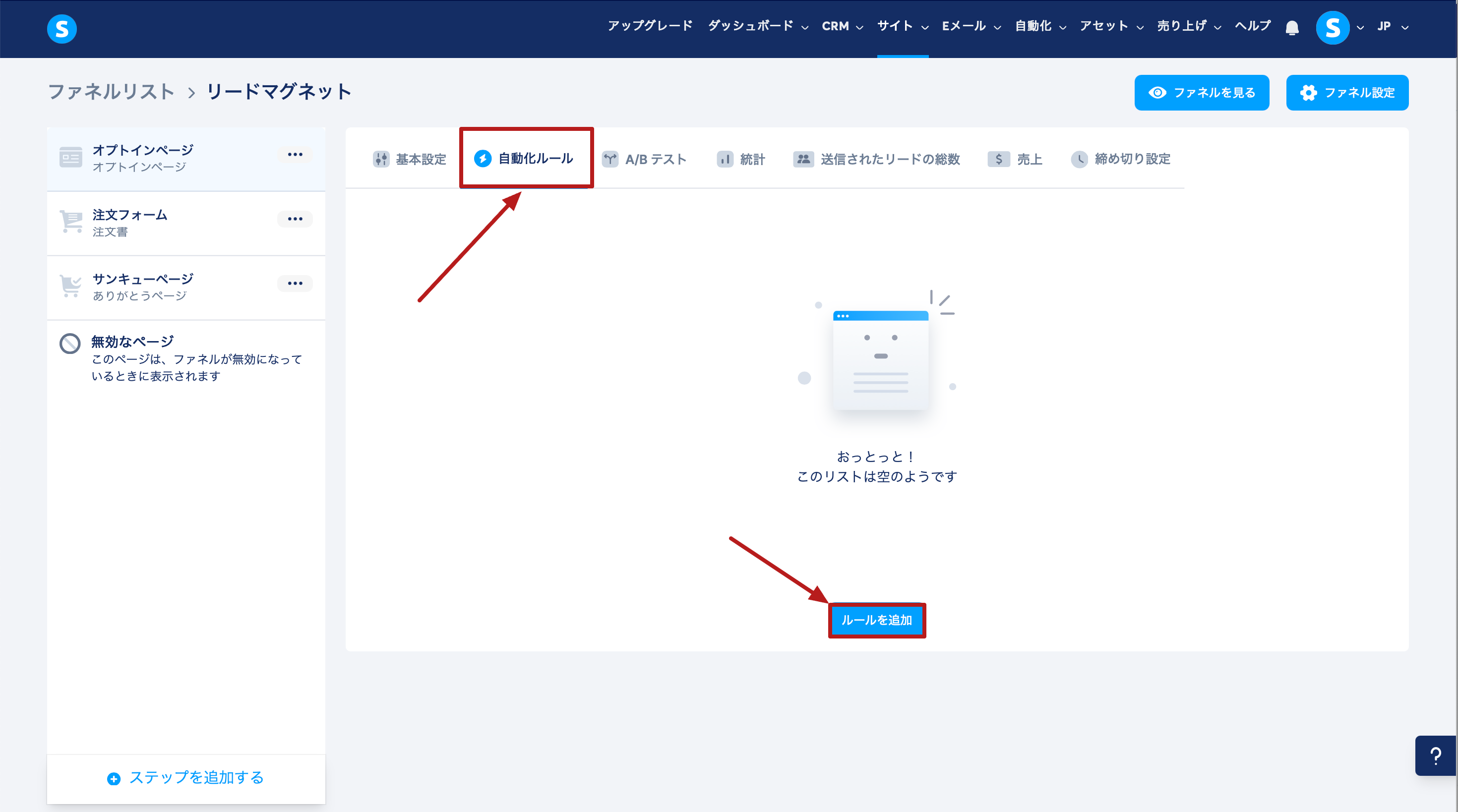 エディターを閉じ、同じページの自動化ルールタブを開きます。ルールを追加ボタンをクリックします。