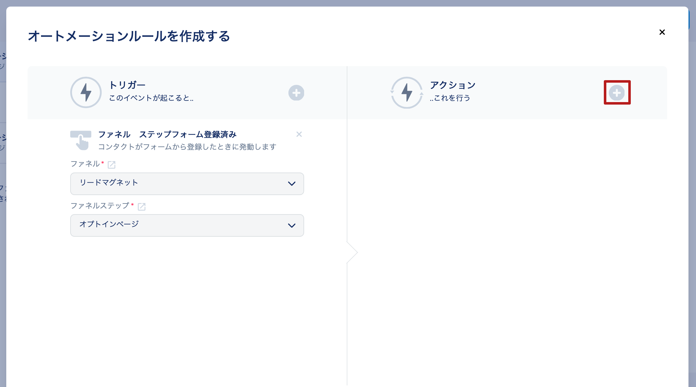 アクションを追加するには、プラス「+」ボタンをクリックします。