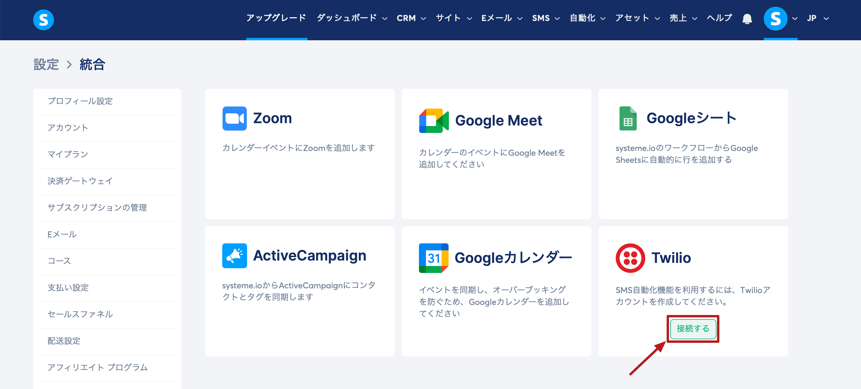 この記事では、Twilioアカウントをsysteme.ioに接続する方法について説明します。