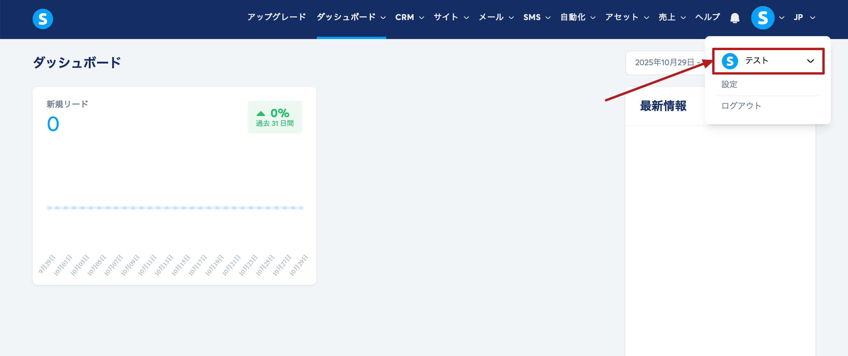 - プロフィール画像をクリックした際に表示されるサブアカウント名を確認することで、現在サブアカウントにログインしていることを確認できます。