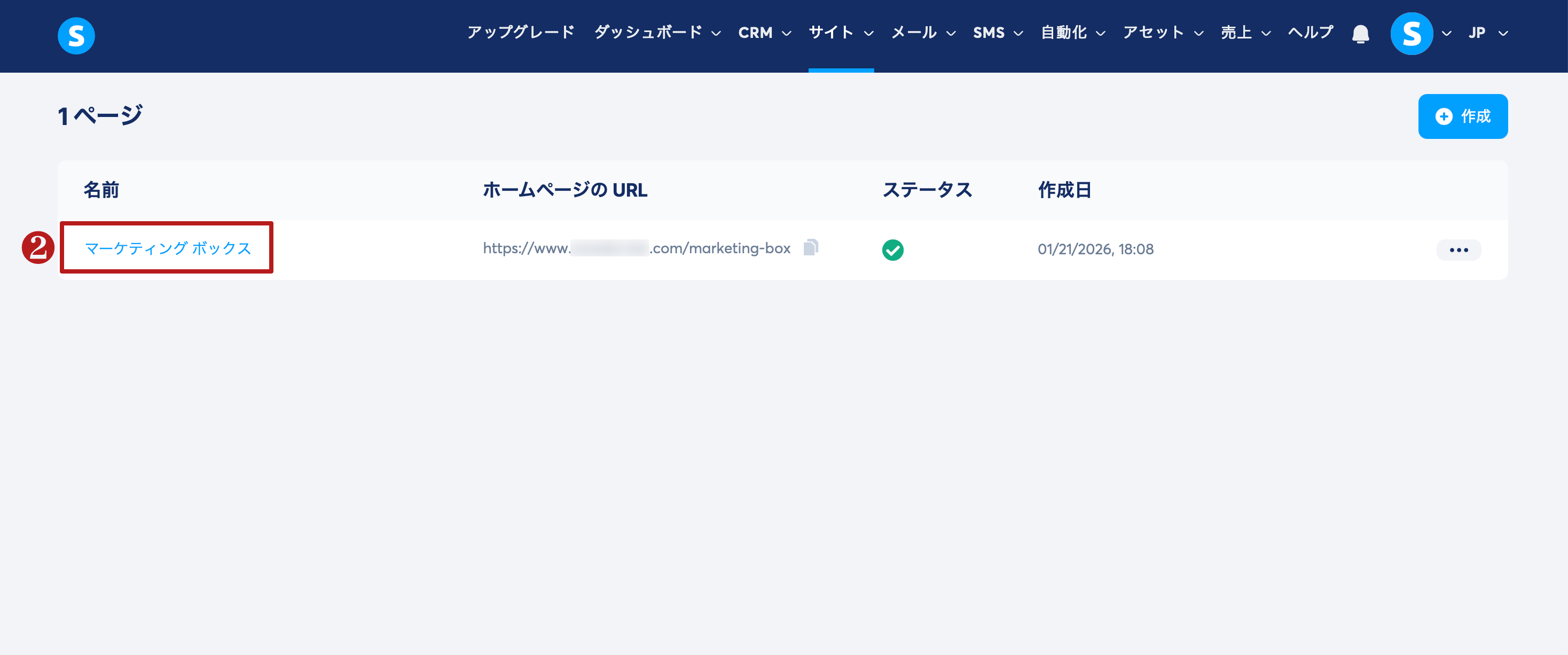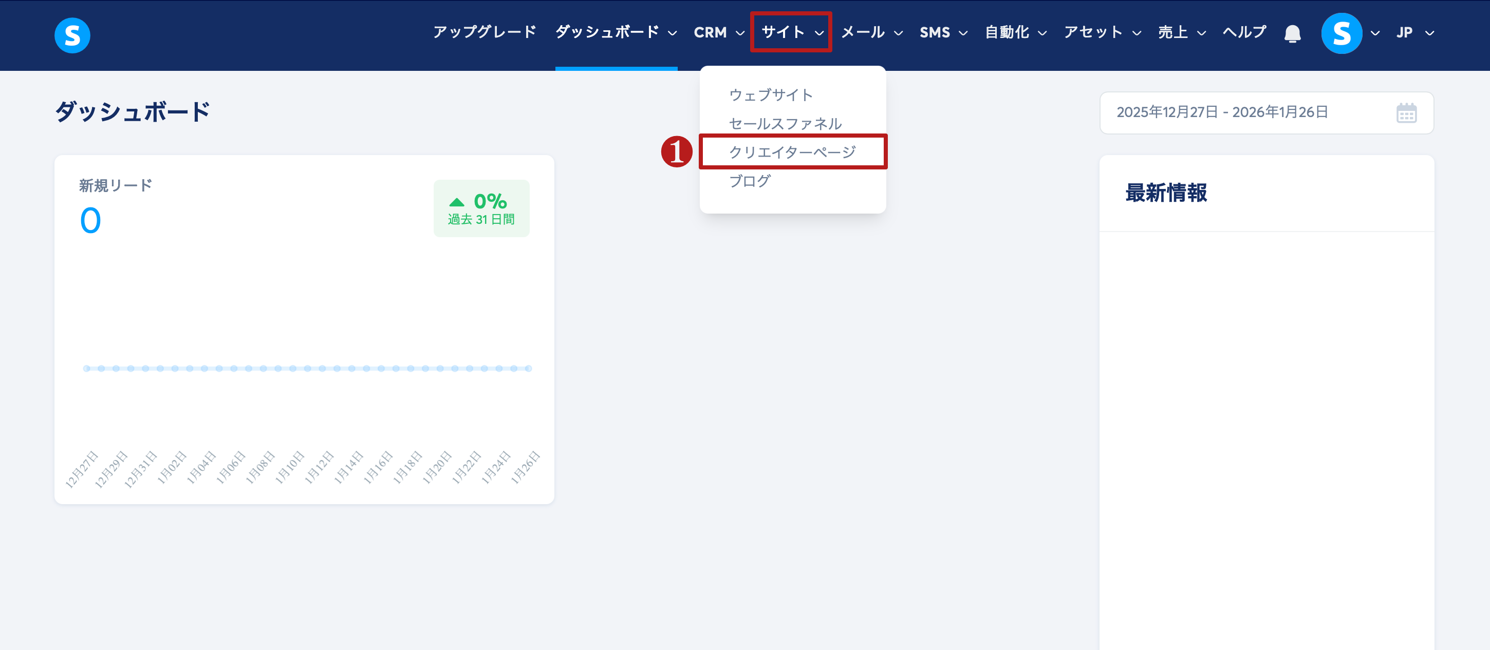 サイトタブに移動し、クリエイターページ(1)をクリックします。