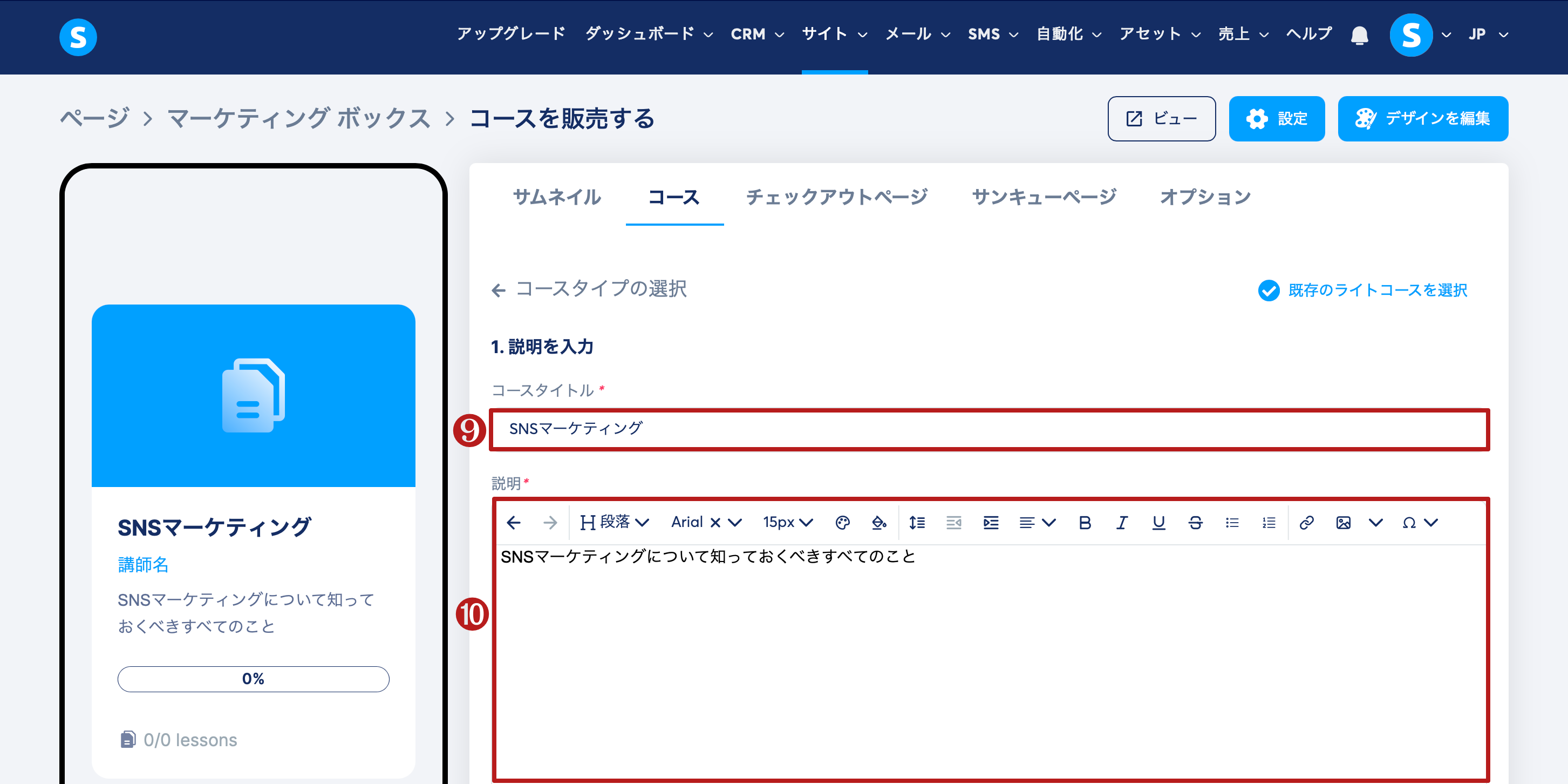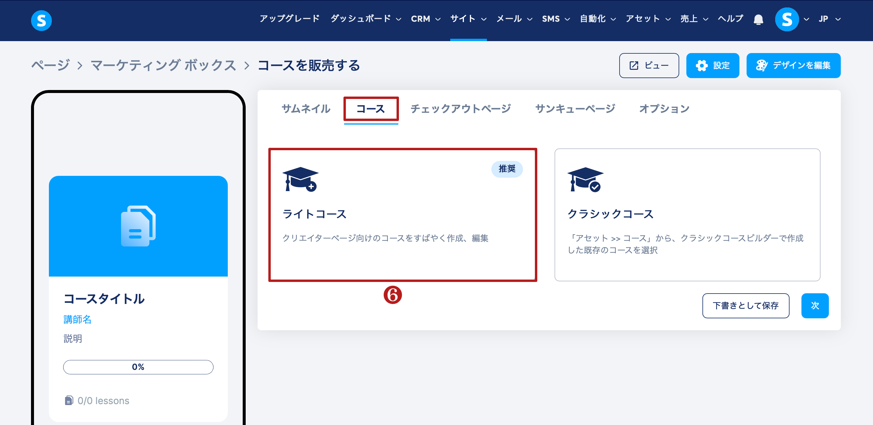 注記:ライトコースは、「コースを販売する」オプションを使用した場合にのみ作成できます。