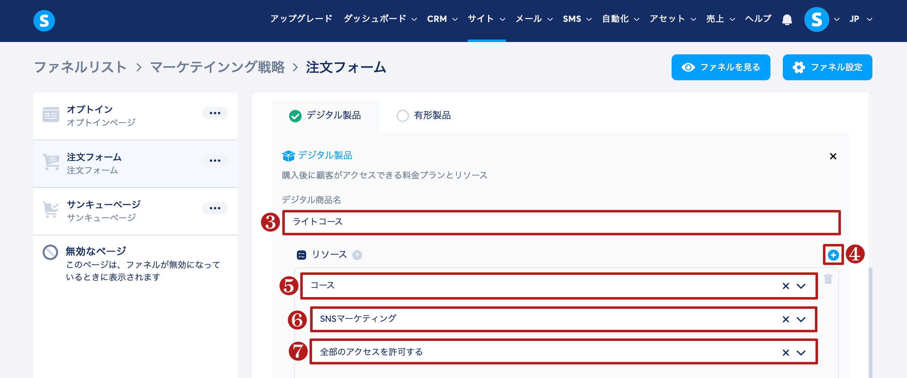 セールスファネル経由での販売: